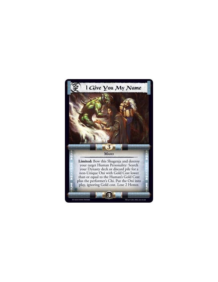 I Give You My Name  - MahoLimited: Bow this Shugenja and destroy your target Human Personality: Search your Dynasty deck or disc