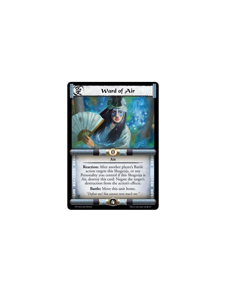 KataLimited: Put this card into play. Discard all your other Kata in play. Battle: If this card is in play, choose your performing Personality: Move him home. If he moved, straighten his unit.