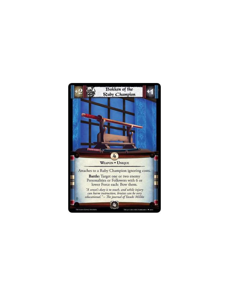 Bokken of the Ruby Champion  - Weapon • UniqueAttaches to a Ruby Champion ignoring costs.Battle: Target one or two enemy Persona