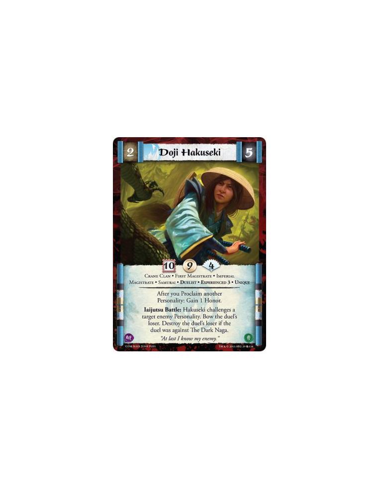 Reaction: Immediately before an Event resolves, bow the Shrine of the Dragon Champion and discard a number of cards from your hand whose Focus values totals over 6, to negate the Event's effects.