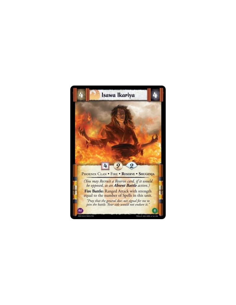 Isawa Ikariya  - Phoenix Clan • Fire • Reserve • Shugenja      (You may Recruit a Reserve card, if it would be opposed, as an Ab