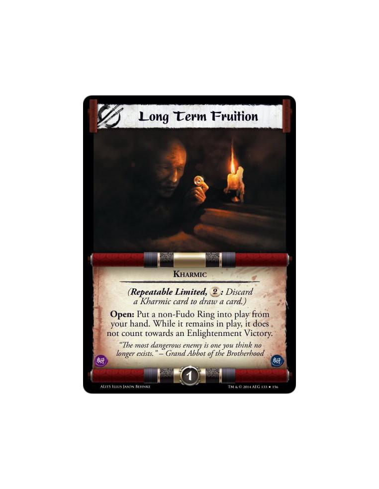 Long Term Fruition  - (Repeatable Limited, 2: Discard a Kharmic card to draw a card.) Open: Put a non-Fudo Ring into play from y