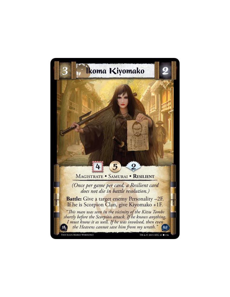 Ikoma Kiyomako  - Magistrate • Resilient • Samurai          (Once per game per card, a Resilient card does not die in battle res
