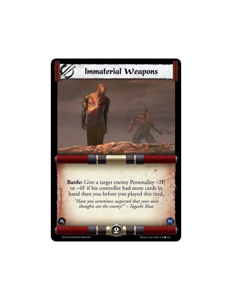 Limited: Issue Challenge. Geisha is your Challenger. Cannot be refused. Geisha may not focus. Geisha has a Chi equal to half the gold spent to bring her into play, rounded down.