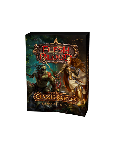 Designed to welcome new players to the world of Flesh and Blood, Classic Battles: Rhinar vs Dorinthea includes two 40-card decks ready to play out of the box, Cold Foil hero and weapon cards, Rainbow Foil equipment, full art mentors, a quickstart playmat, and a 48 page illustrated lore booklet telling the tale of these heroes and how their classic battle became stuff of legend.