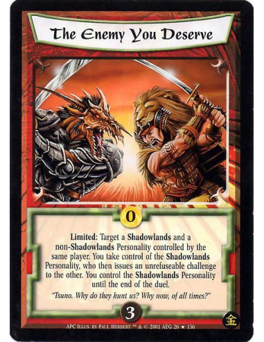 Spider Clan • Monk • Unique Lose 4 Honor. Maho Battle: Discard a Ring from your hand or destroy a Ring controlled by any player: Lose 2 Honor. Bring a target Dead Personality you own into play in Fuyuzare's army, waiving costs. Destroy the target after this battle's resolution.