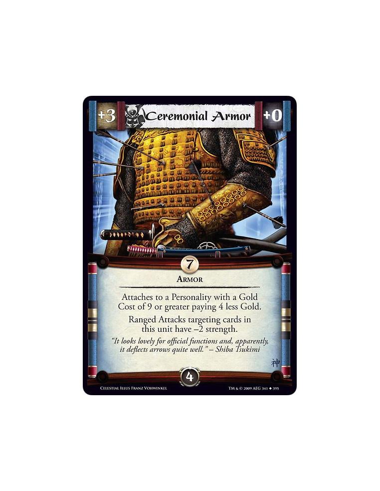 Ceremonial Armor (Español)  - Armor Attaches to a Personality with a Gold Cost of 9 or greater paying 4 less Gold. Ranged Attack