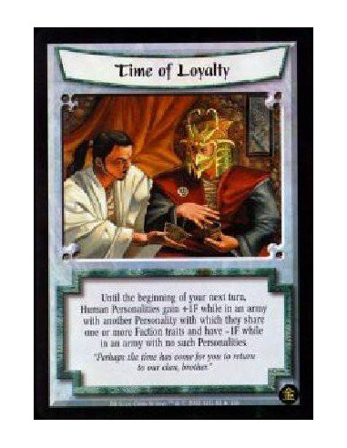 Time Of Loyalty  - Until the beginning of your next turn, Human Personalities gain +1F while in an army with another Personality