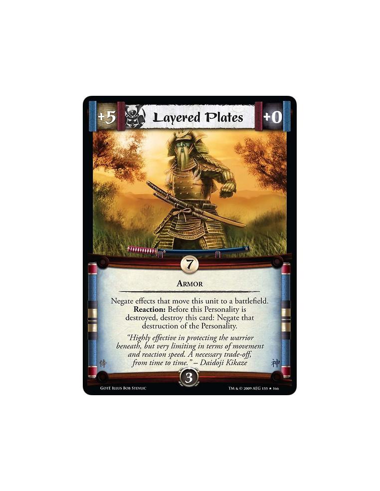 Layered Plates (Español)  - Armor. Negate effects that move this unit to a battlefield. Reaction: Before this Personality is des