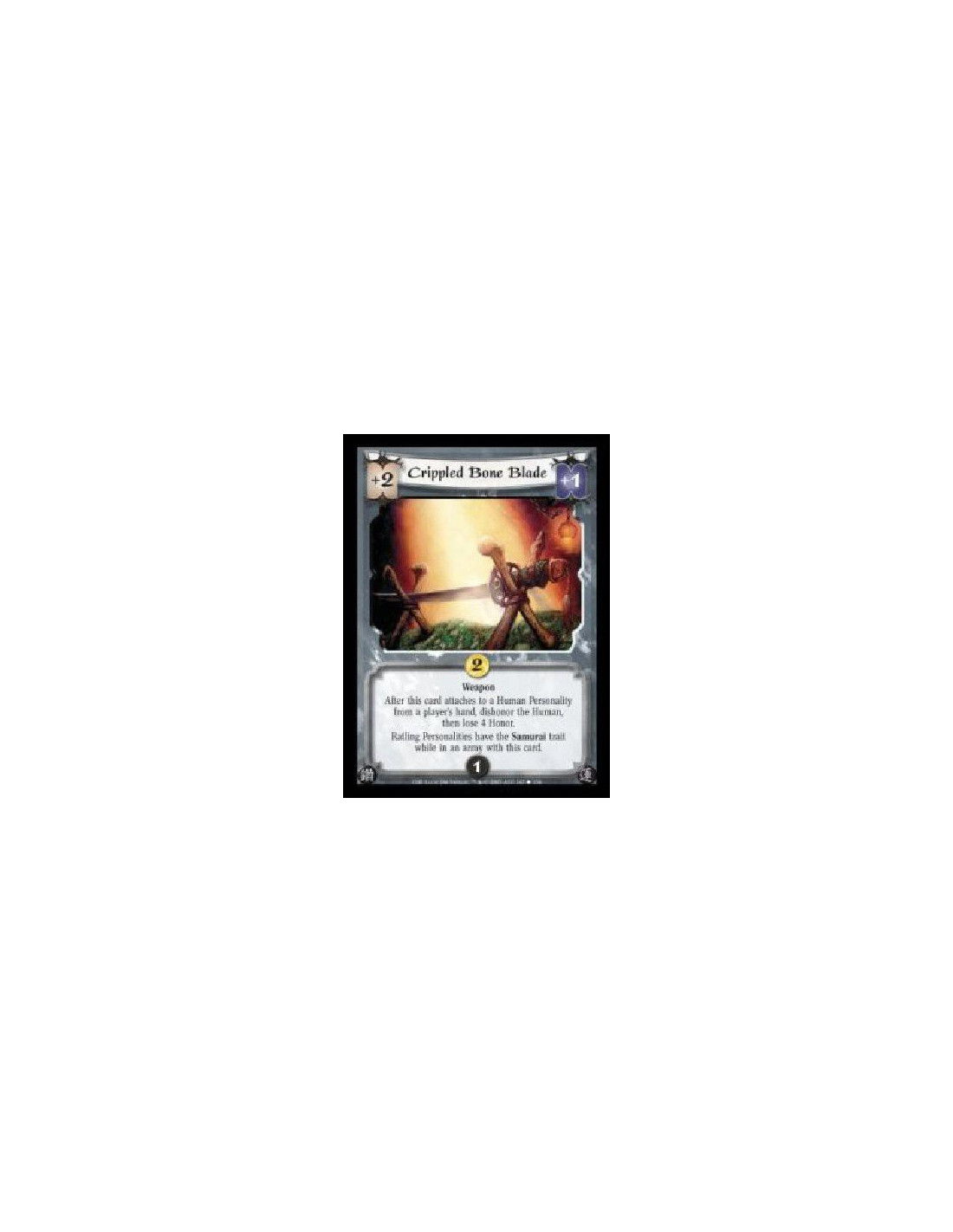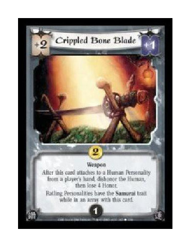 Crippled Bone Blade (Español)  - Weapon. After this card attaches to a Human Personality from a player's hand, dishonor the Huma