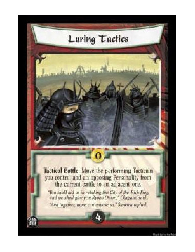 Lion Clan • Samurai Hagio has +1F while attacking. Reaction: Even if Hagio is bowed, before battle resolution, if he is at the current battlefield: Straighten him.