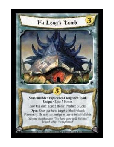 Fu Leng's Tomb Exp FOIL  - Shadowlands · Experienced Forgotten Tomb · Unique · Lose 3 Honor. Bow this card: Lose 2 Honor. Produc