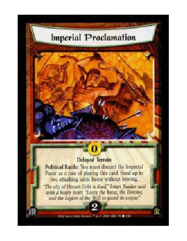 Imperial Proclamation  - Delayed TerrainPolitical Battle: You must discard the Imperial Favor as a cost of playing this card. Se