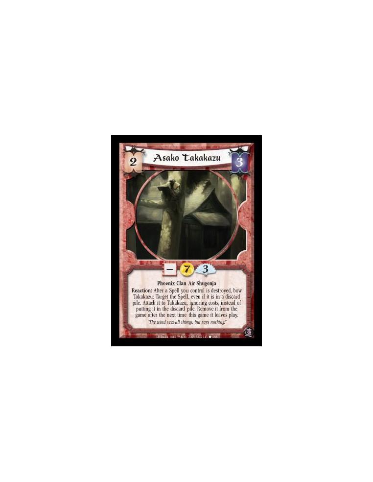 Asako Takakazu (Español)  - Phoenix Clan Air Shugenja. Reaction: After a Spell you control is destroyed, bow Takakazu: Target th