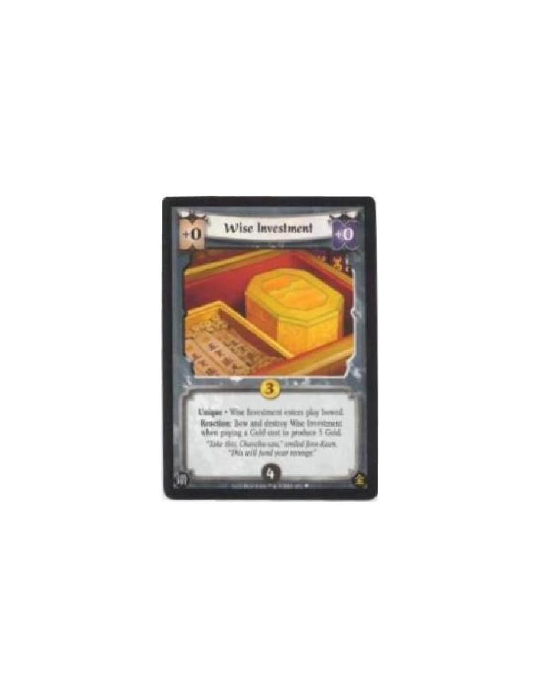 Wise Investment  - Unique Wise Investment enters play bowed.Reaction: Bow and destroy Wise Investment when paying a Gold cost to