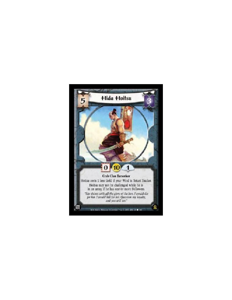 Hida Hoitsu  - Crab Clan Berserker Hoitsu costs 1 less Gold if your Wind is Toturi Tsudao. Hoitsu may not be challenged while he