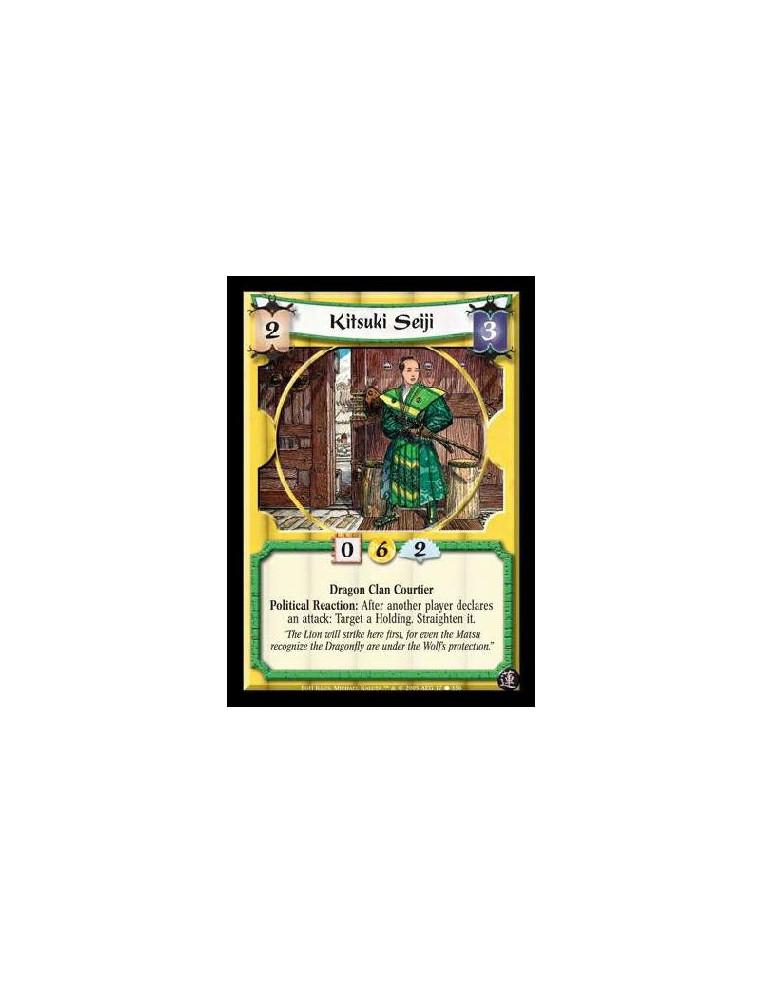 Kitsuki Seiji  - Dragon Clan Courtier. Political Reaction: After another player declares an attack: Target a Holding. Straighten
