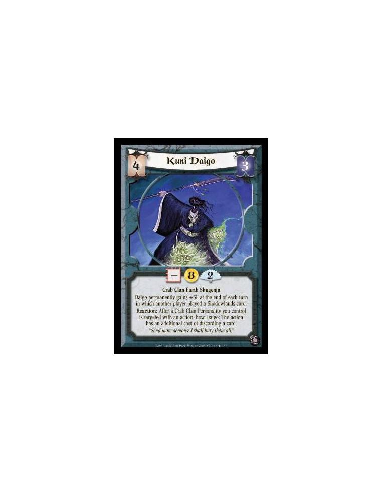 Crab Clan • Jade • Shugenja • Witch-Hunter Battle: Give a target enemy Personality -3F. Destroy him if he is Shadowlands.