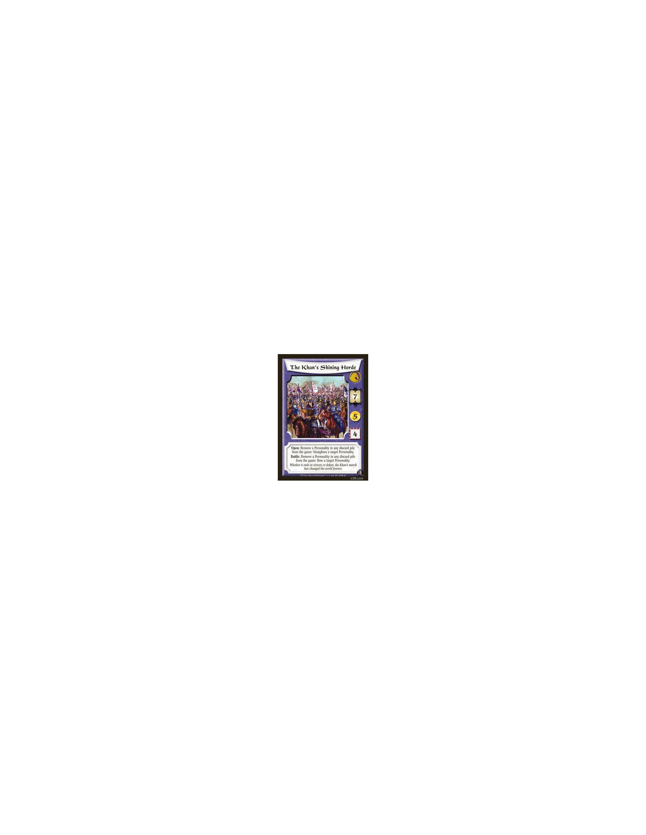 Unique. Does not count against the number of Regions a Province can attach. Open: Pay 1 Gold. Even during battles where you have no units, target one of your Provinces. If the current strength is less than twice its base strength, give it +1 strength.
