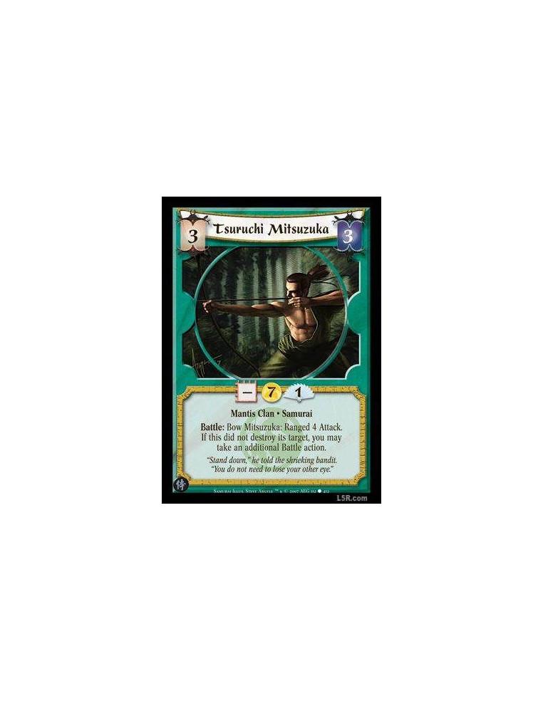Tsuruchi Mitsuzuka  - Mantis Clan · Samurai. Battle: Bow Mitsuzuka: Ranged 4 Attack. If this did not destroy its target, you may