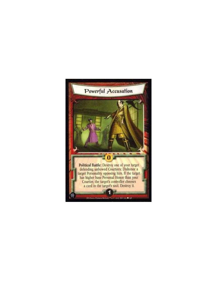 Powerful Accusation  - Political Battle: Destroy one of your defending unbowed Courtiers: Dishonor a target Personality opposing