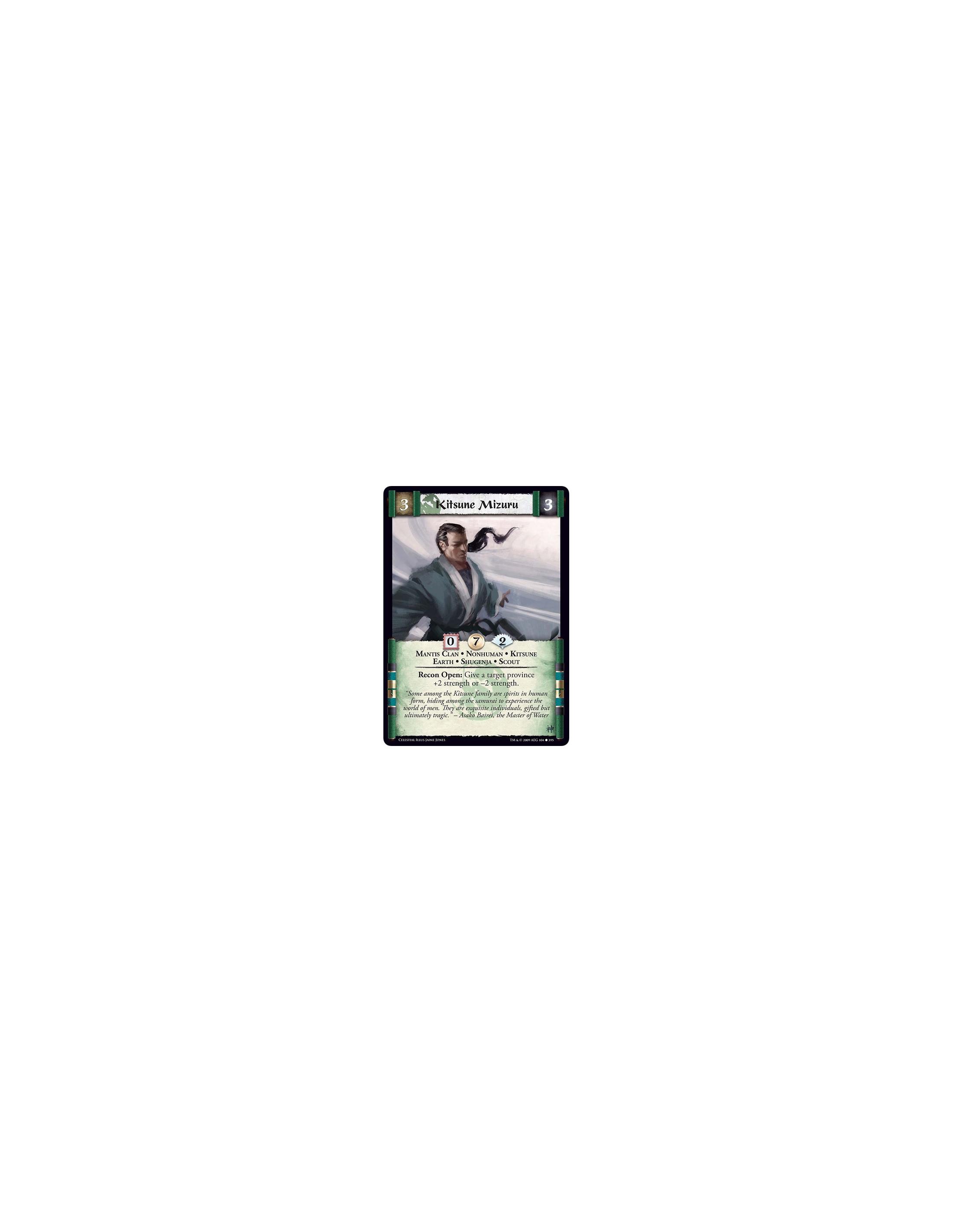 Kitsune Mizuru  - Mantis Clan • Nonhuman • Kitsune • Earth • Shugenja • Scout Recon Open: Give a target province +2 strength or