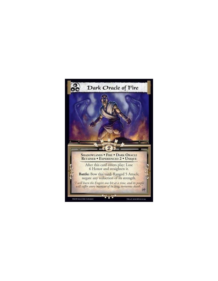 Shadowlands • Earth • Dark Oracle • Retainer • UniqueBattle/Open: Any number of times per turn, bow this card: Give your provinces +3 strength. Lose 4 Honor which will not be increased, decreased, negated, or given to another player instead.