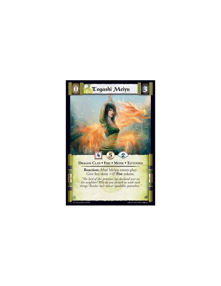 Togashi Meiyu  - Dragon Clan • Fire • Monk • TattooedReaction: After Meiyu enters play: Give her three +1F Fire tokens.