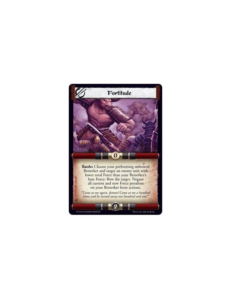 Reaction: Play when one of your unbowed Personalities is challenged to negate the challenge. Your Personality must have at least 4 more Force than the challenger, or at least 2 more if your Personality is Cavalry. Lose 3 Honor.