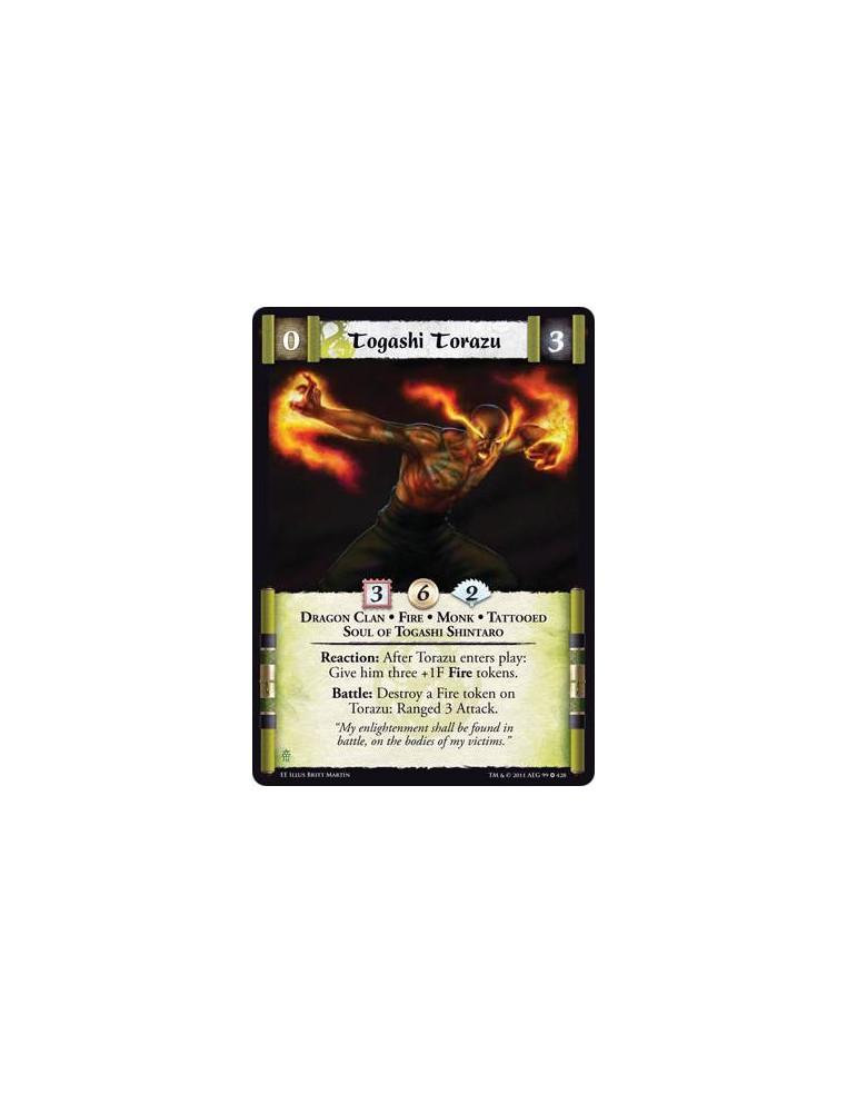 Fire • Unique Focus Effect: You may give this card -2 Focus Value. If you do, after this duel ends, put this card into play if you won this duel during a battle. Battle: Bow this card or discard it from your hand, and destroy your target Personality: Destroy a target enemy Personality with lower Chi.
