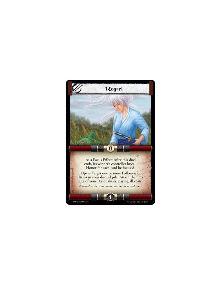 Regret  - As a Focus Effect: After this duel ends, its winner’s controller loses 1 Honor for each card he focused. Open: Target