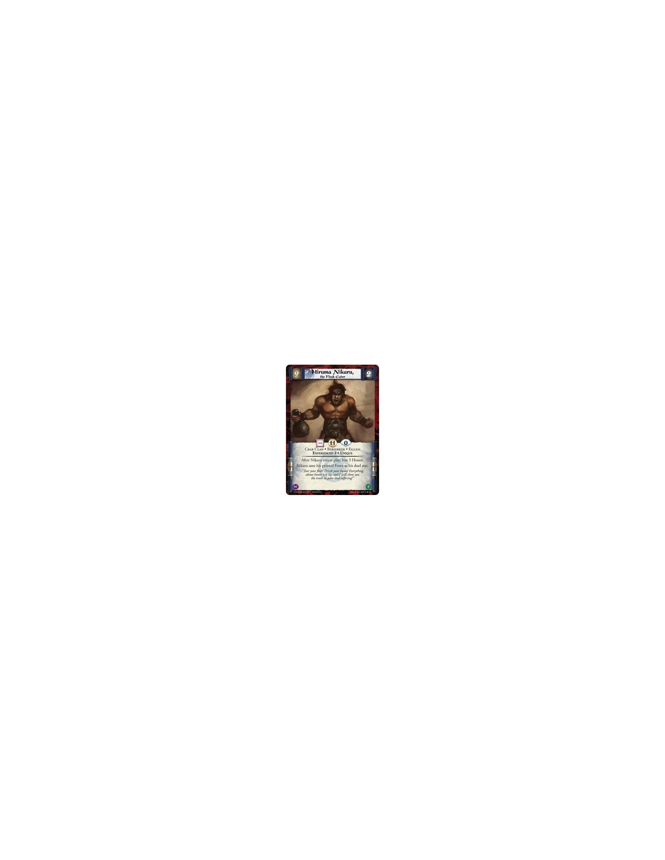 Political Limited: Target a player who controls at least one Personality. That player loses 5 Honor at the start of your next turn if he or she has not targeted you or your cards or Stronghold, or declared an attack against you and assigned at least one unit, between then and now.