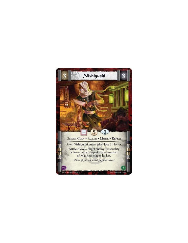 Phoenix Clan • Air • Void • Shugenja • Alchemist • Ishiken • Experienced • Unique Open: Even if Kumai is bowed: Straighten your target Air Shugenja. Reaction: After the resolution of an action from whose effects you drew a card: Put a card from your hand on the bottom of your deck. Draw a card.