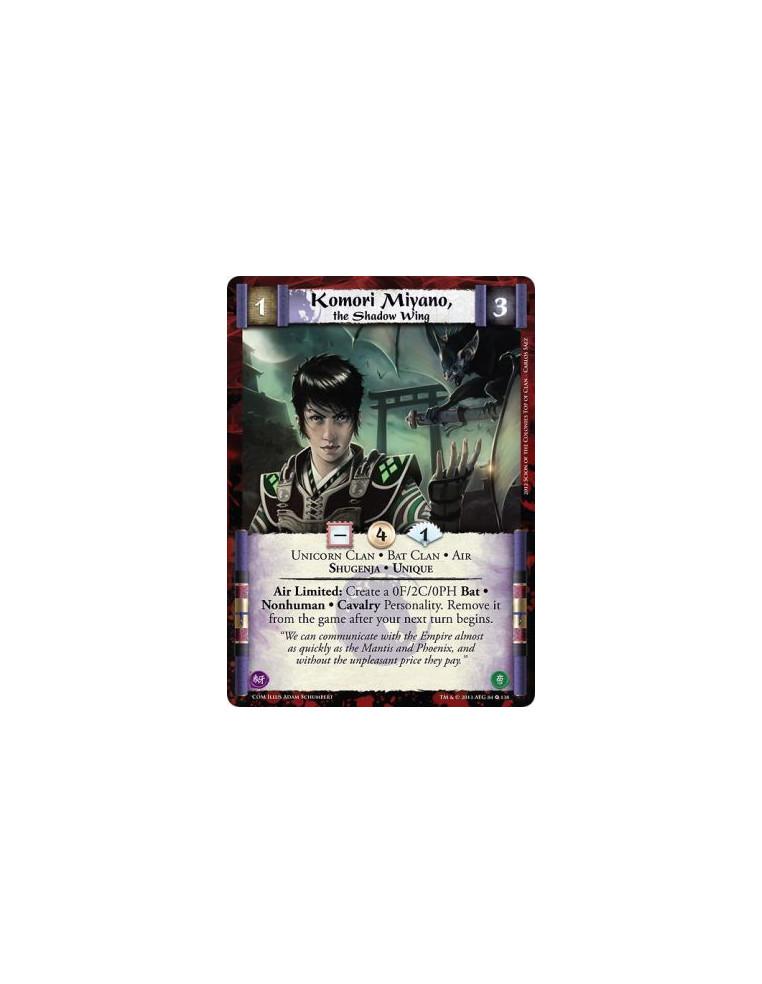 Ninja • Samurai • SpyNinja Battle: Give a target enemy Personality a -1F/-1C Poison token. You may move Sadao home if the target was Lion Clan.