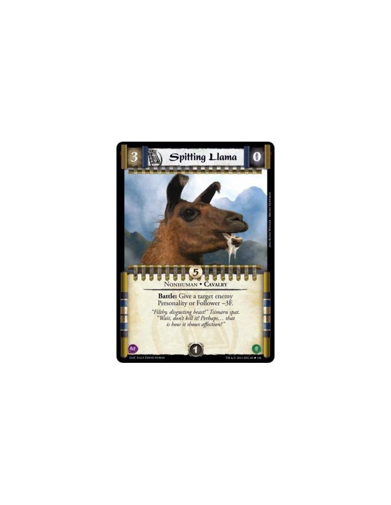 Spitting Llama  - Nonhuman • CavalryBattle: Give a target enemy Personality or Follower -3F.