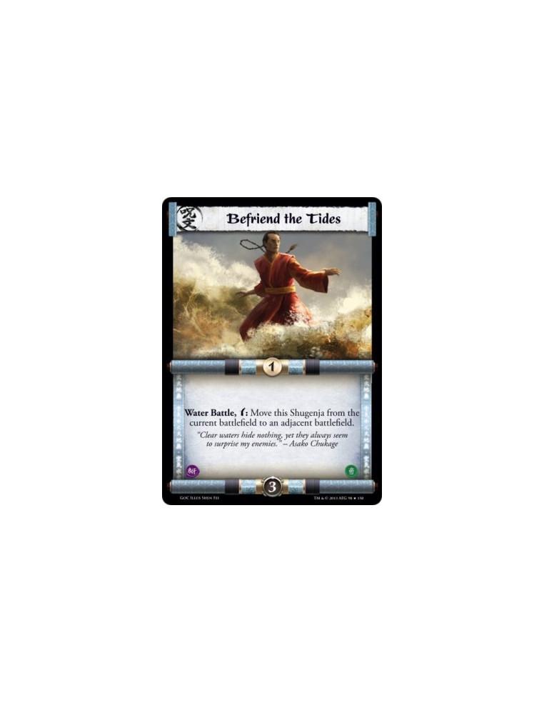 Reaction: Bow this Shugenja to prevent one Elemental effect (spell or other card) Which is targeting you or any of your cards in play. (Clarification: This negates an action, not an 'effect'.)