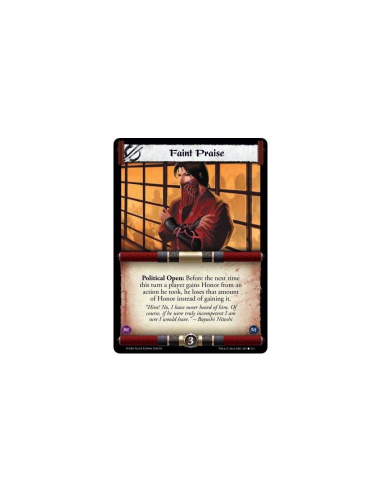 Political Open: Before the next time this turn a player gains Honor from an action he took, he loses that amount of Honor instead of gaining it.