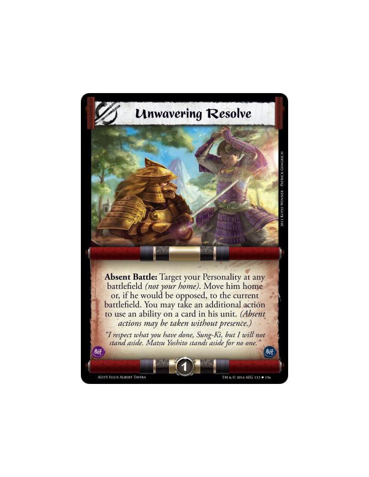 Unwavering Resolve  - Absent Battle: Target your Personality at any battlefield (not your home). Move him home or, if he would b