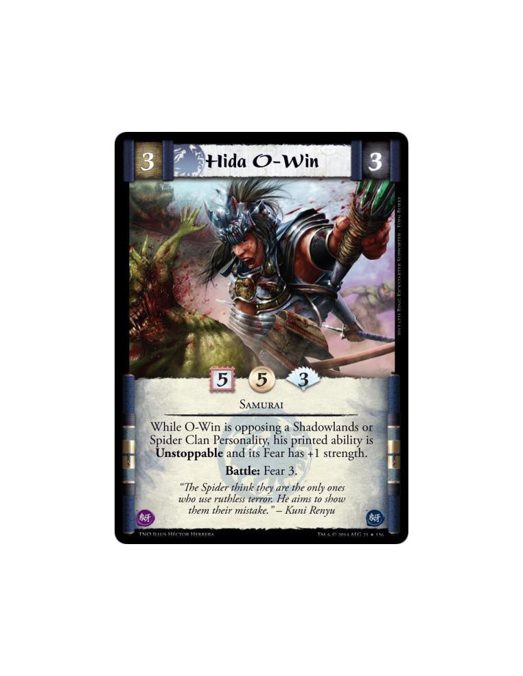 Phoenix Clan Thunder. Shugenja. Shadowlands. Experienced 2. Unique. Master of Earth Reaction: Bow to cancel any spell or innate ability targeting one of your cards. Battle: Bow Tadaka to destroy a number of opposing Shadowlands cards equal to or less than Tadaka's Chi. You cannot target a Personality with followers attached unless you are targeting all...