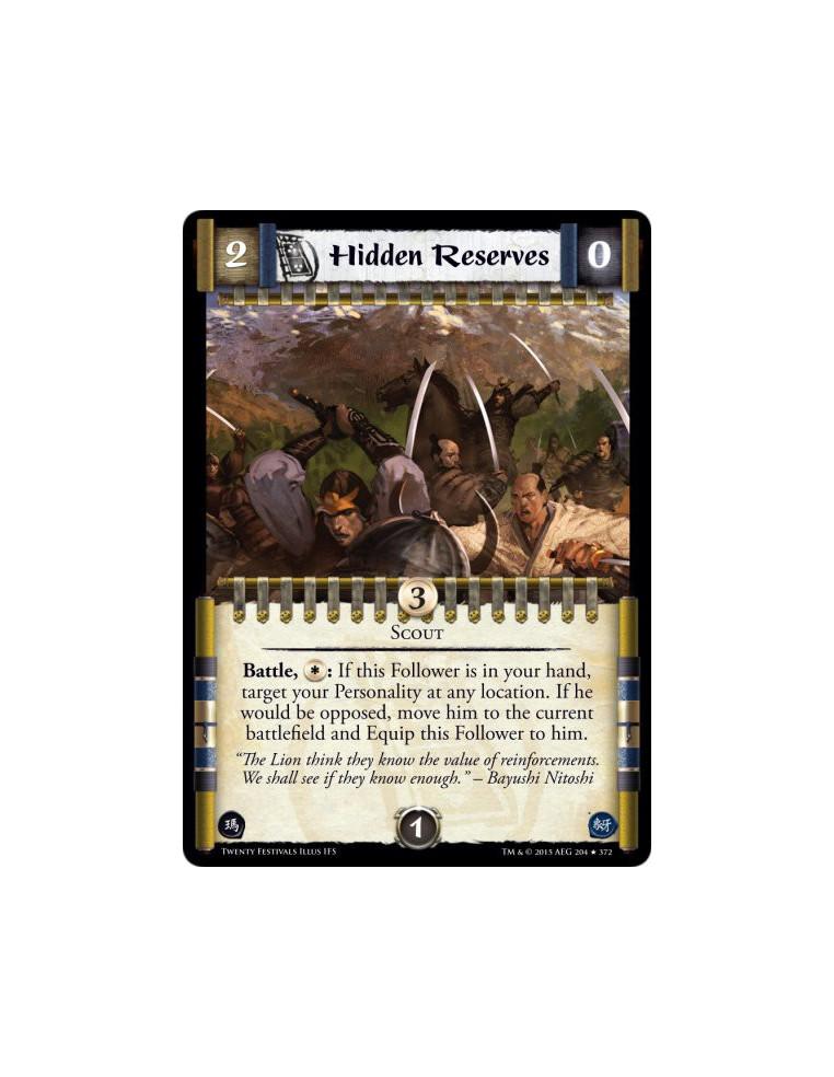 Hidden Reserves  - ScoutBattle, *:: If this Follower is in your hand, target your Personality at any location. If he would be op