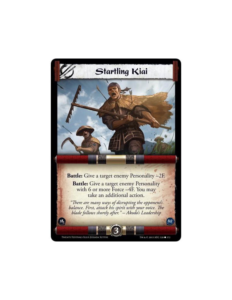 "There are many ways of disrupting the opponent's balance. First, attack his spirit with your voice. The blade follows shortly after." - Akodo's Leadership
