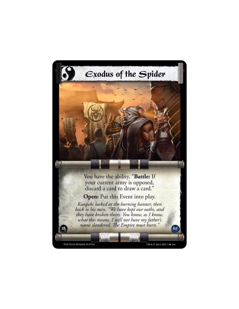 Scorpion Clan • Samurai • Magistrate Kahoku has +2F while another player controls a dishonorable Personality.Battle: Ranged 3 Attack, with +2 strength if the target is dishonorable.