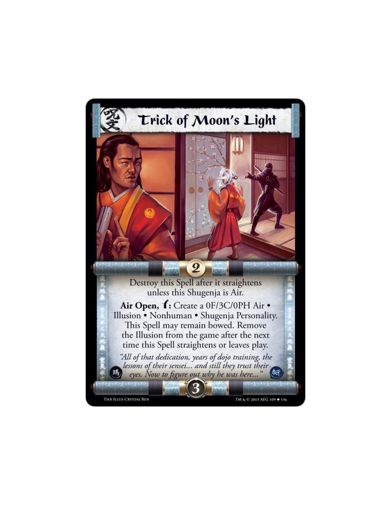 Kiho Elemental Open: Target one of your Shugenjas or Monks to give a Personality either +1F or +1C. Then, at the end of the turn, you may put this card into your hand from your discard pile.