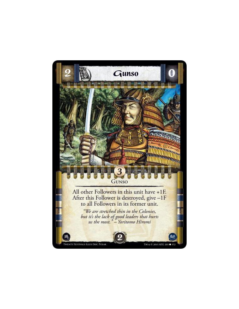 Gunso FOIL  - GunsoAll other Followers in this unit have +1F. After this Follower is destroyed, give -1F to all Followers in its