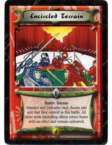 Encircled Terrain  - Terrain Battle: Before this battle’s resolution, the Attacker and Defender, in the order of your choice, ea