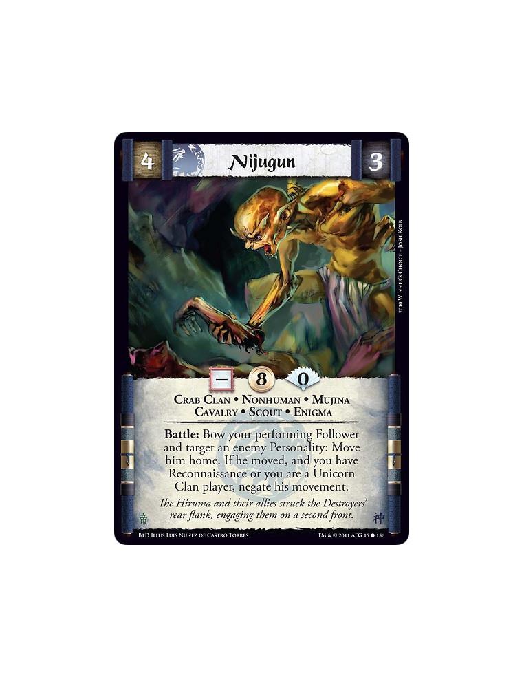 Nijugun (Español)  - Crab Clan • Nonhuman • Mujina • Cavalry • Scout • EnigmaBattle: Bow your performing Follower and target an