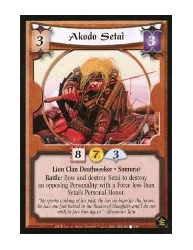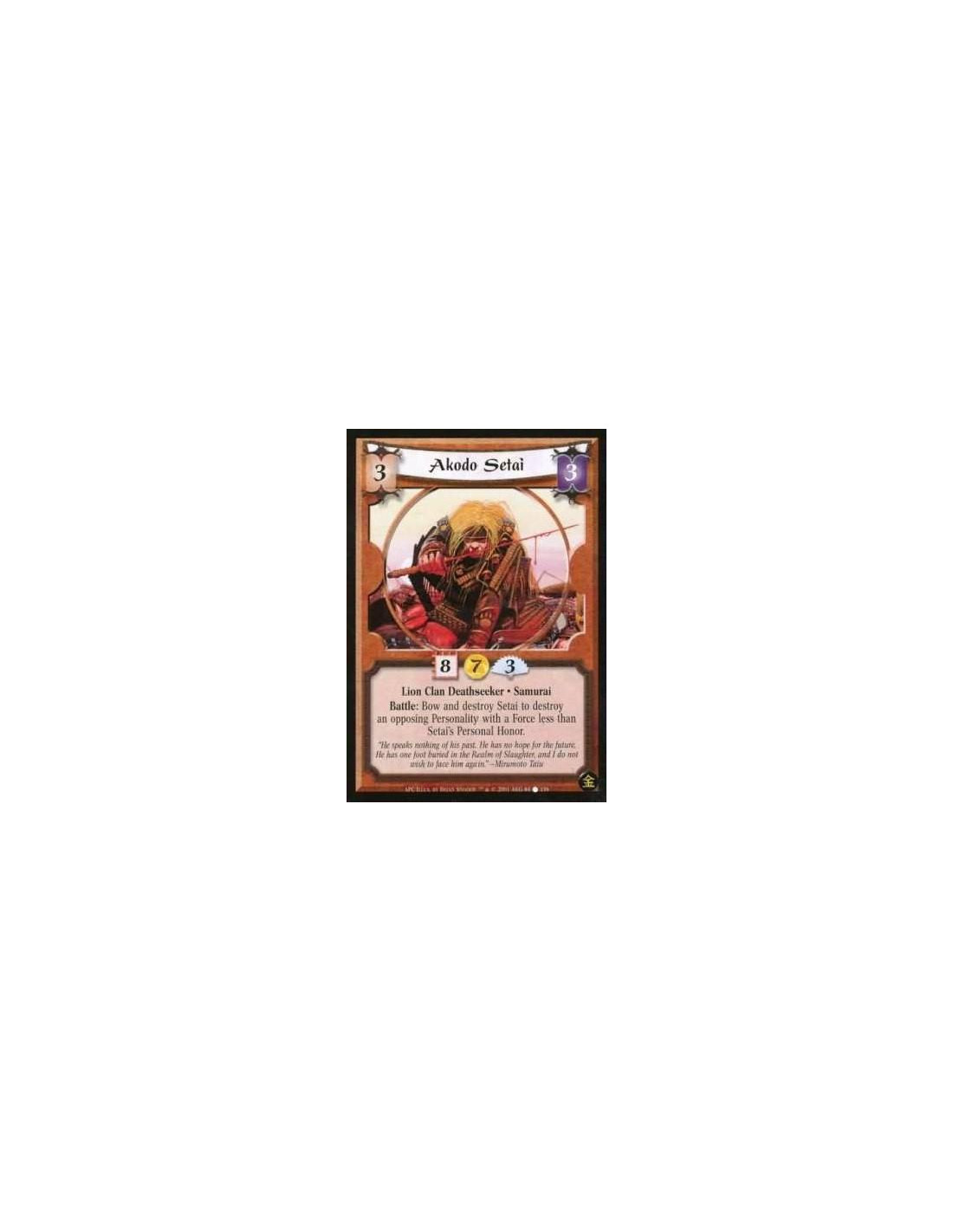 Akodo Setai  - Lion Clan Deathseeker. Samurai Battle: Bow and destroy Setai to destroy an opposing Personality with a Force less