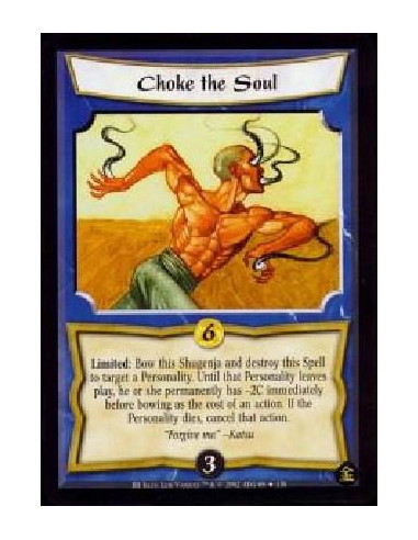 Choke the Soul  - Limited: Bow this Shugenja and destroy this Spell to target a Personality. Until that Personality leaves play,