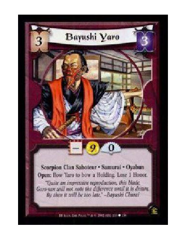 Bayushi Yaro  - Scorpion Clan Saboteur. Samurai. Oyabun Open: Bow Yaro to bow a Holding. Lose 1 Honor.