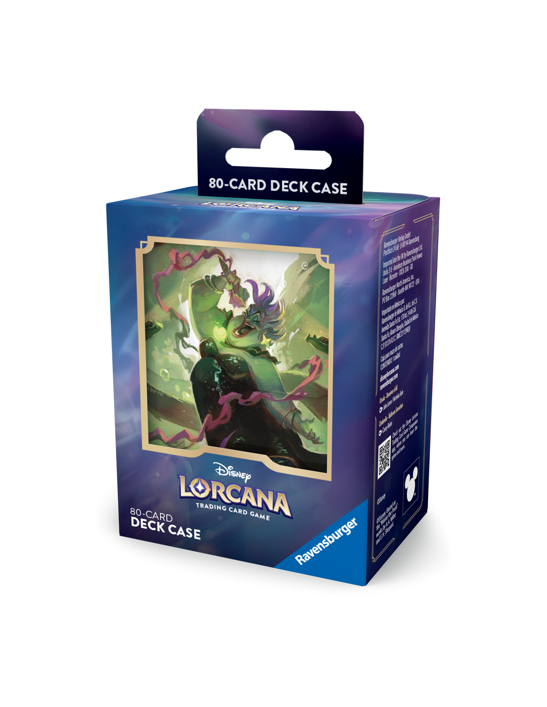 ▪ Las cajas para mazos muestran los diseños de las cartas encantadas Cenicienta – Sensación en el Baile y Úrsula – Engaña a Todos, y ofrecen orden y protección para tus cartas.
